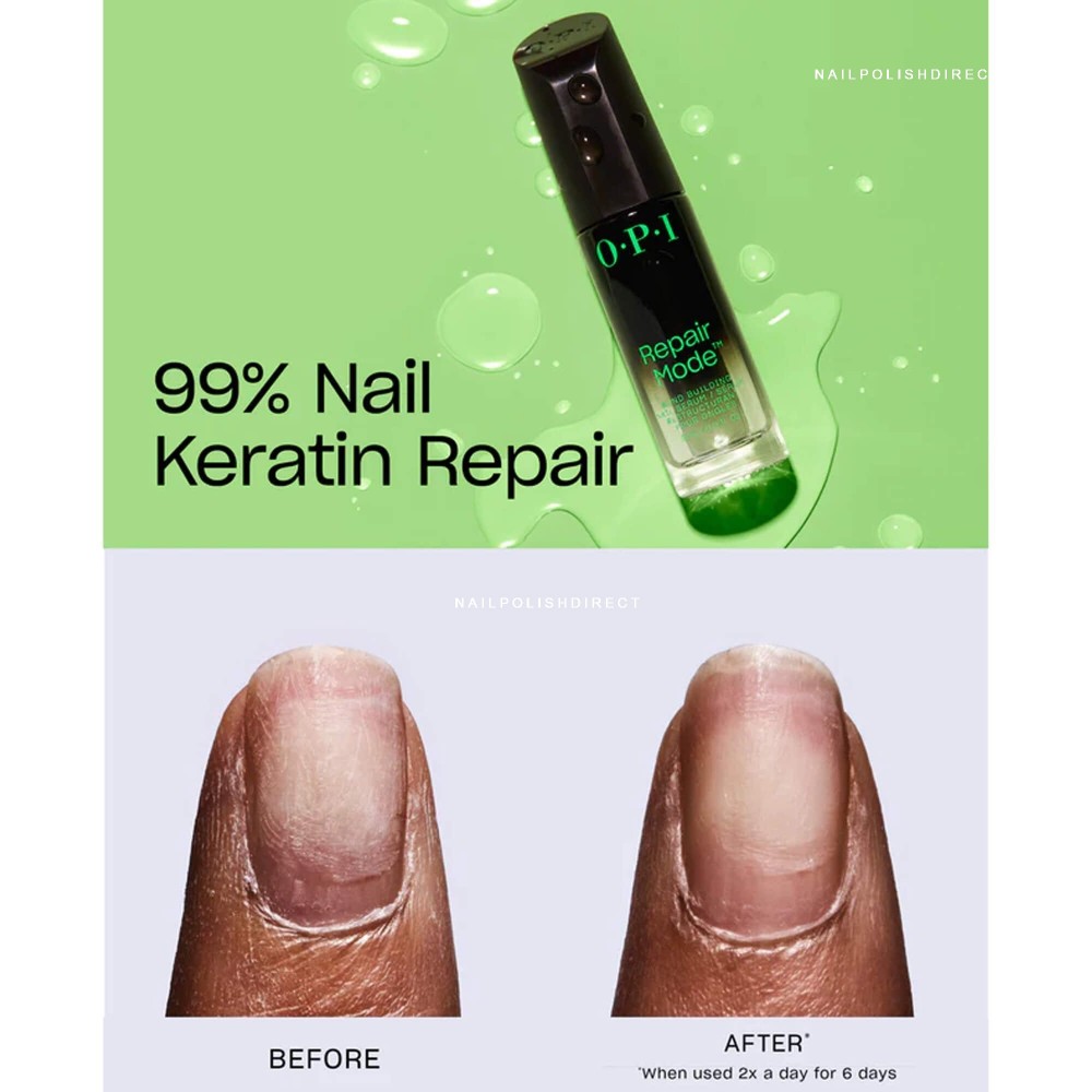 Η OPI φέρνει την επανάσταση στην κατηγορία της περιποίησης των νυχιών, με μια πρωτοποριακή καινοτομία, το Repair Mode™. Ο πρώτος ορός νυχιών που δημιουργεί δεσμούς στο εσωτερικό του νυχιού με την κατοχυρωμένη τεχνολογία Ulti-Plex™ που αποκαθιστά σε βάθος το 99% της κερατίνης* με αποτέλεσμα 4 φορές πιο δυνατά νύχια σε μόλις 6 ημέρες*.