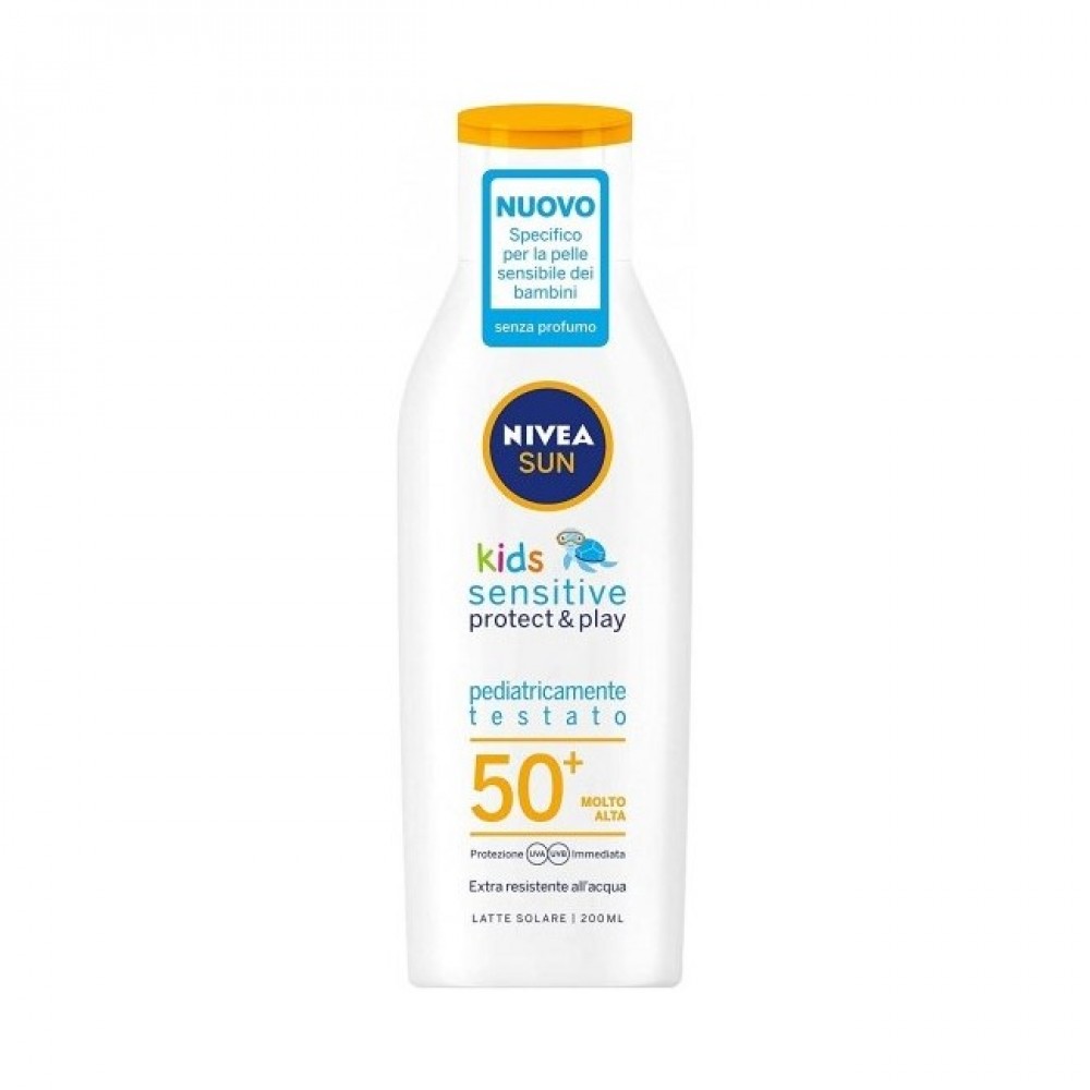 Το Nivea Sun Kids Sensitive Protect & Play Spray είναι ένα παιδιατρικά ελεγμένο,υψηλής προστασίας από UVA/UVB και αντιοξειδωτική δράση που μειώνει τον κίνδυνο αλλεργικών αντιδράσεων σχεδιασμένο για την ευαίσθητη παιδική επιδερμίδα και έξτρα ανθεκτικό στο νερό.